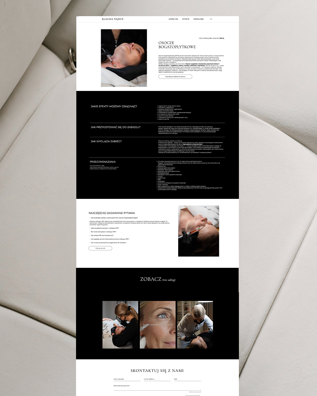 Rozbudowana strona typu multipage dla Kliniki Kosmetycznej. Całość opiera się na systemie WordPress, jednak zrezygnowaliśmy tu z użycia gotowych wtyczek i szablonów. Wszystkie zastosowane rozwiązania zostały stworzone przez nas od zera, pod konkretne potrzeby kliniki, co gwarantuje szybkość wczytywania i stabilność witryny.